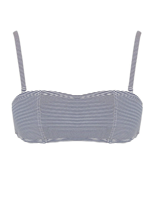 Soutien-gorge bandeau moulé avec armatures côtés et bande antiglisse au-dessus et sous la poitrine. Nouettes montées en fourreau dans le dos. Bretelles amovibles réglables.